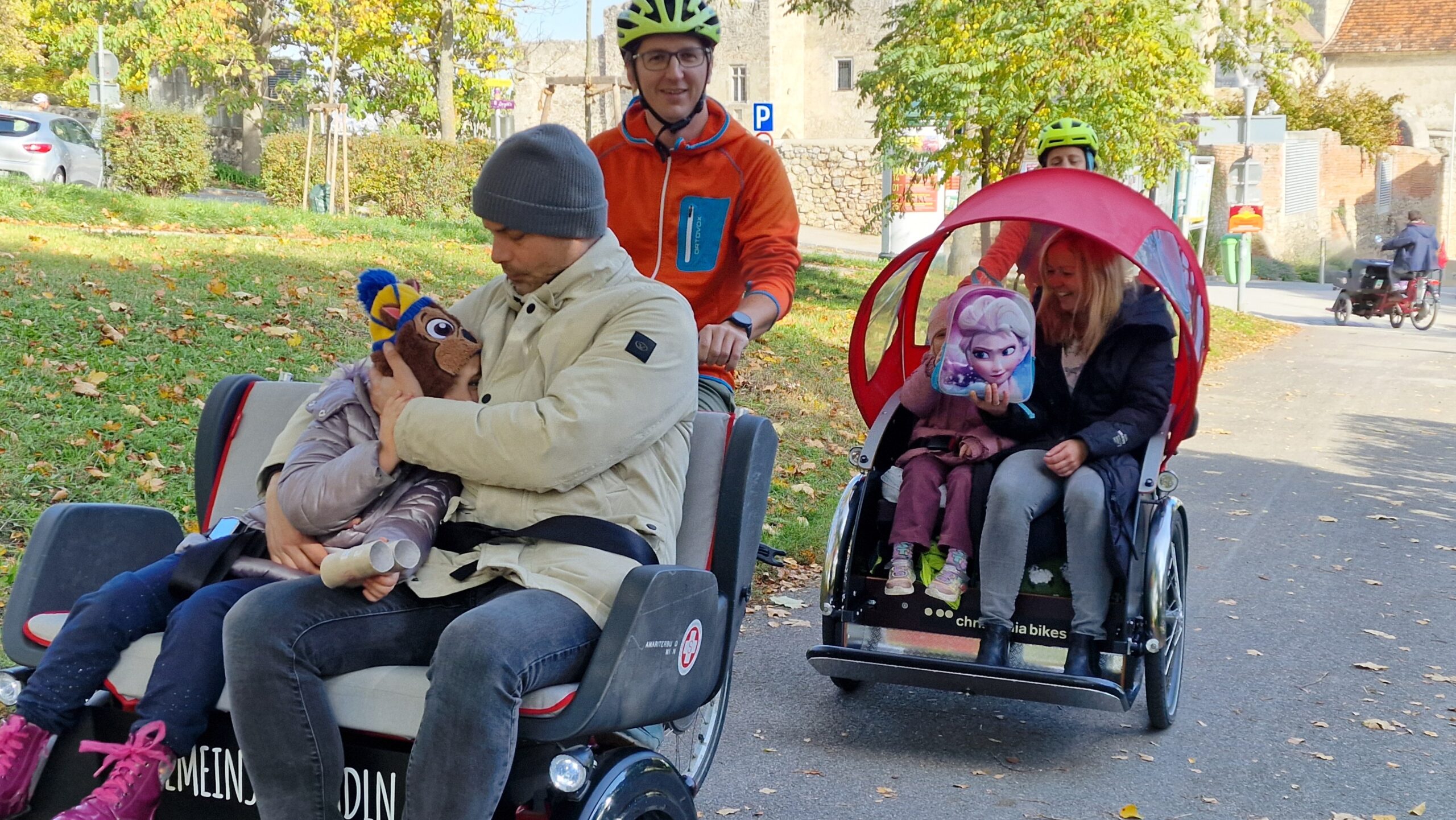 Gemeinsam mit Pilot:innen und Rikschas aus Wien, Wiener Neustadt, Klosterneuburg und Ebreichsdorf – sowie mit tatkräftiger Unterstützung von Elke aus Lustenau, der österreichischen Initiatorin von Radeln ohne Alter – konnte für das Heidefest ein kostenloses Rikscha-Shuttle vom Marktplatz in Perchtoldsdorf bis zum Festplatz auf der Heide angeboten werden. Auch das Ziesel durfte mitfahren. 🙂